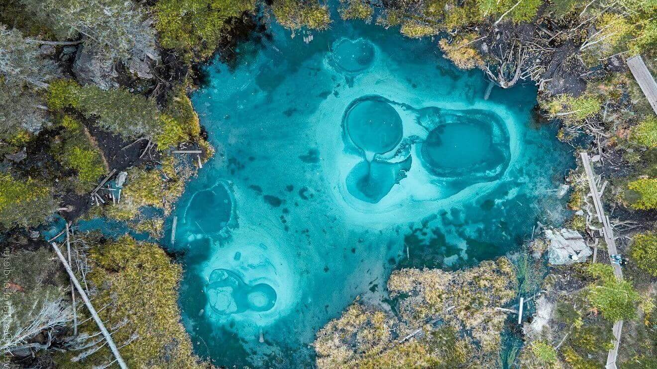 Давно хотела увидеть эти места с воздуха — ожидания совпали. Горы у Актру выглядят очень красиво, и в целом маршрут построен так, что панорамы не «мигают», а можно спокойно рассмотреть. Гейзерное озеро реально бирюзовое, плюс на дне заметны узоры, это интересно.